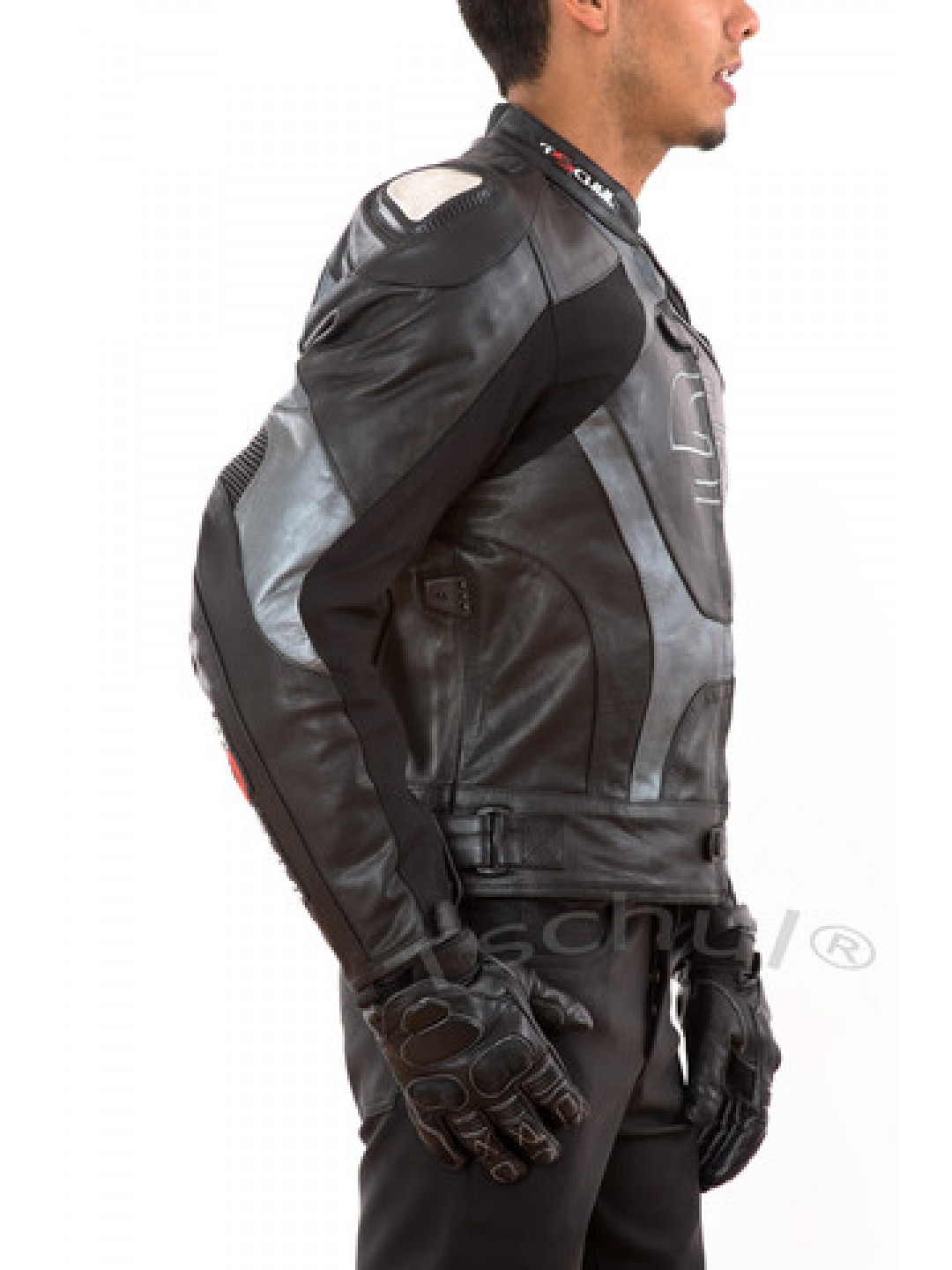 Geaca moto piele Tschul "Carbon" Silver Grey